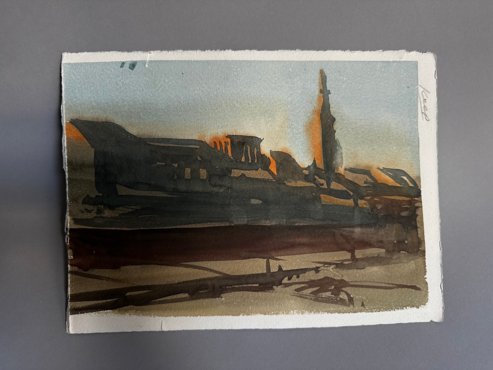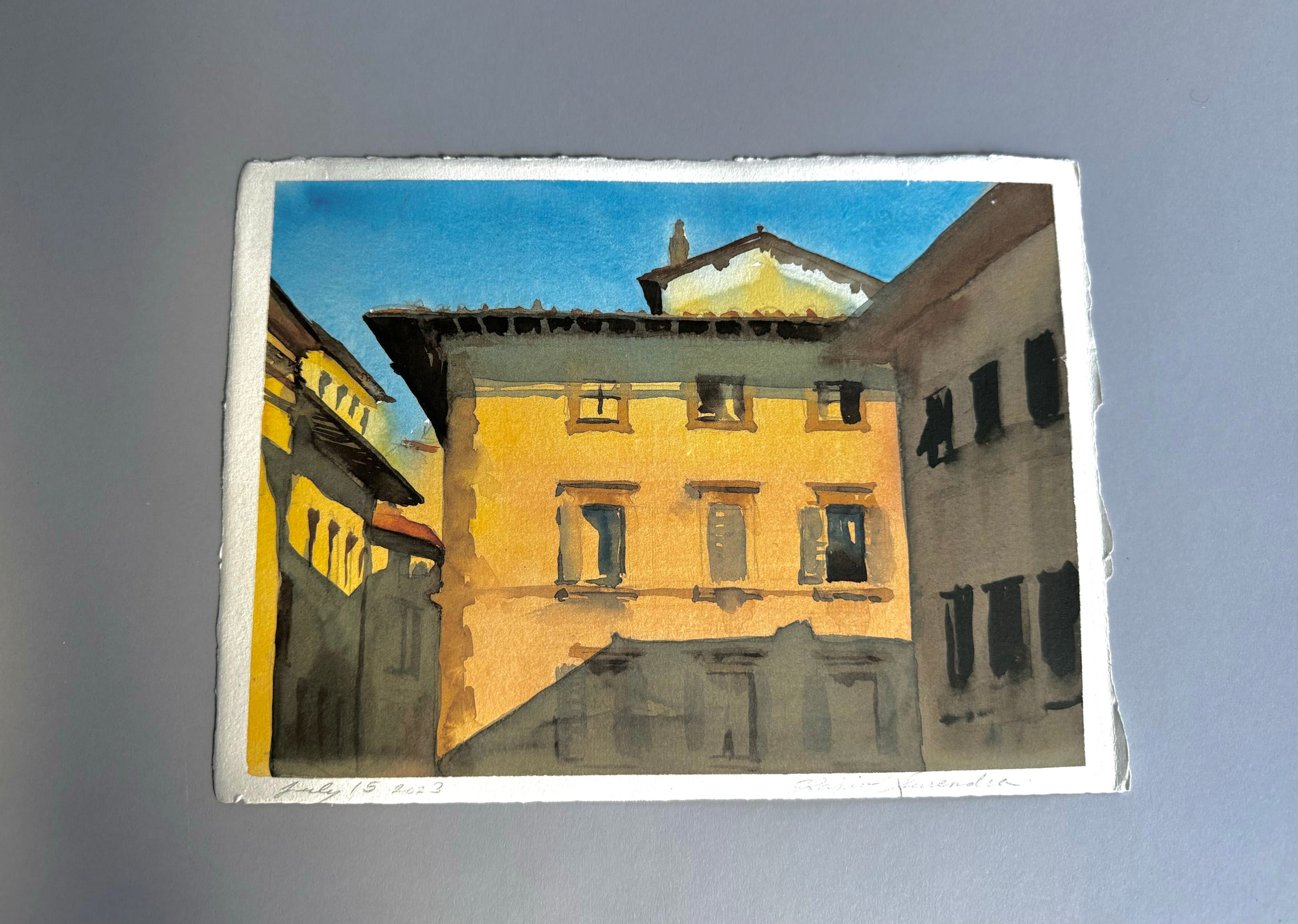 A study of a palazzo done in the early morning in Piazza di Santa Croce, Florence. Rajiv painted this building twice. The other version of this painting is framed and hangs in Rajiv's living room.