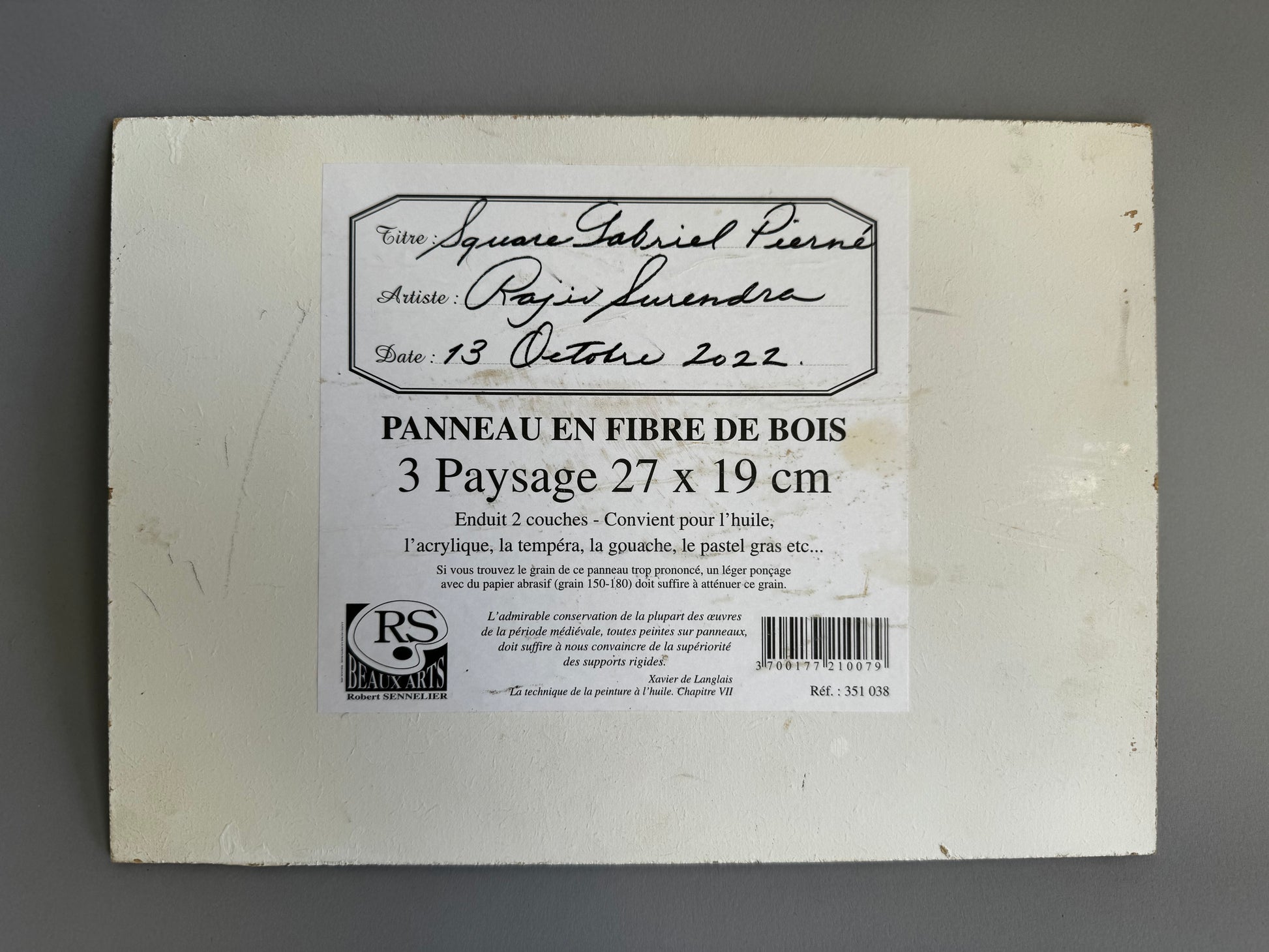 Oil on Board, signed and dated on back label.