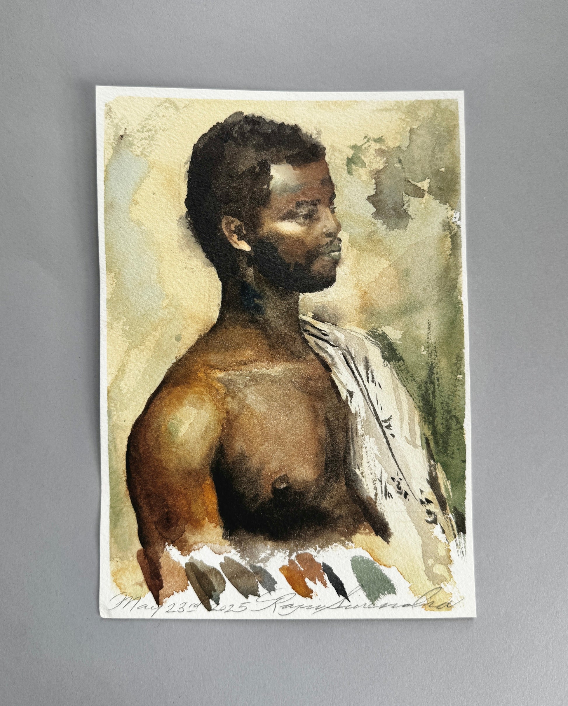 This watercolor study is a copy of a recently discovered portrait of Prince William Nii Nortey Dowuona by Gustav Klimt, painted in 1897. I've always loved Klimt's work, making a pilgrimage to Vienna two summers ago to see the many portraits and murals he painted there. My jaw dropped when I first saw this portrait of an African Prince, and it is now my favorite work by Klimt.